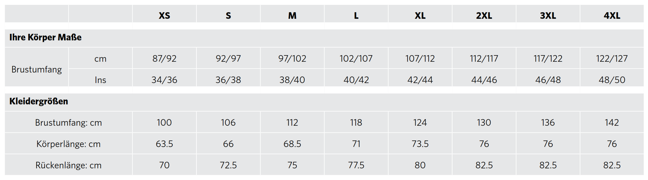 • Brust- und Seitentaschen mit Innenfutter und umgedreht eingenähten Zips mit Zugband